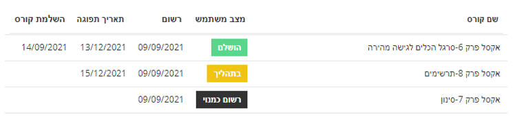 מערכת הלמידה הממוחשבת שלנו מסוג LMS, תומכת בפעילות ומאפשרת לך לדעת בכל עת אילו פרקים למדת, אילו פרקים בתהליך ואלו לא התחלת.